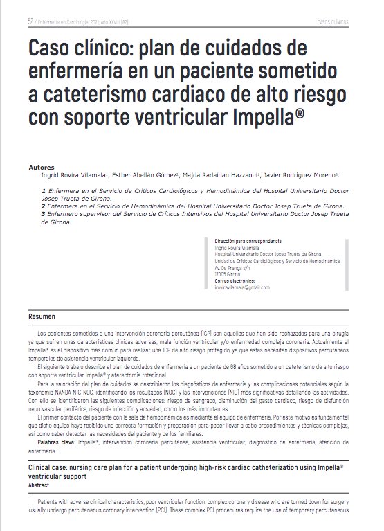 Caso clínico: plan de cuidados de enfermería en un paciente sometido a cateterismo cardiaco de alto riesgo con soporte ventricular Impella®