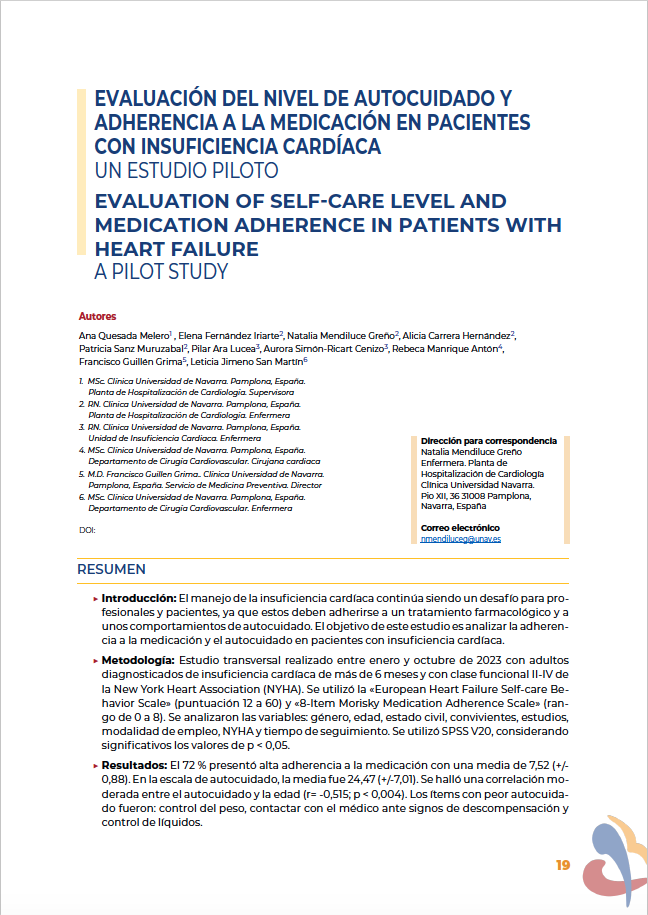 EVALUACIÓN DEL NIVEL DE AUTOCUIDADO Y ADHERENCIA A LA MEDICACIÓN EN PACIENTES CON INSUFICIENCIA CARDÍACA. UN ESTUDIO PILOTO.