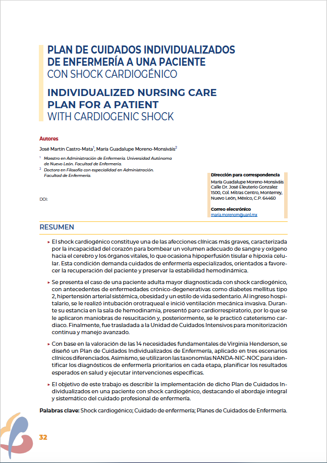Plan de Cuidados Individualizados de Enfermería a una paciente con shock cardiogénico